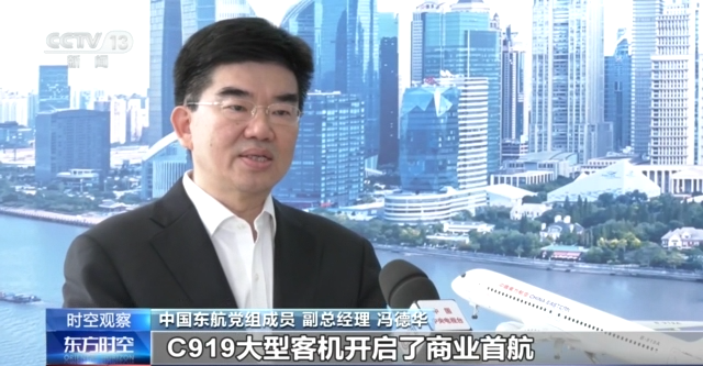 中国东航党组成员 副总经理 冯德华:C919大型客机开启了商业首航,意味着这个机型从研发、制造、取证到投运全面贯通。