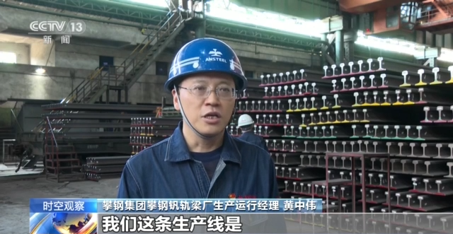 攀钢集团攀钢钒轨梁厂生产运行经理 黄中伟:我们这条生产线是国内第一条百米钢轨生产线,生产出的100米长定尺钢轨,轨高精度误差可以控制在0.6毫米以内,平直度误差可以控制在0.3毫米以内,代表着国际先进水平。