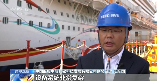 中国船舶中船邮轮科技发展有限公司副总经理 汪彦国:整个船上的系统非常复杂,里面的装修材料、机电设备都配置非常高。所以说针对邮轮,它有一个完整的叫做邮轮供应链的产业体系,这个产业体系对于我们整个装备的发展至关重要。