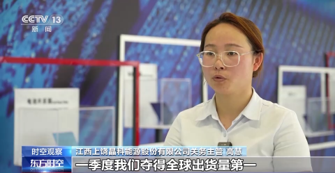 江西上饶晶科能源股份有限公司关务主管 高慧:一季度我们夺得全球出货量第一,截至5月,我们出口订单超过140亿元,比去年同期增长超三成。