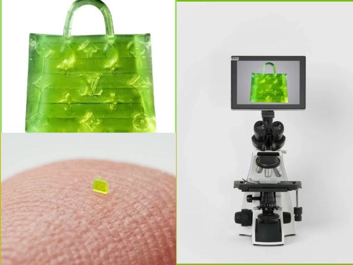 据网上介绍,该款包包的体积只有657*222*700mm,整体大小跟一颗海盐差不多,需要放在显微镜下才能看到包身细节,这款包的原型是在lv经典的Onthego手袋上改造而成的,创作团队运用了双光子聚合的3D打印制作而成。大家知道吗?就是这么一款不实用也不美观的包包,甚至搁哪里都容易丢失的包包,居然在拍卖会上以63750美元,折合人民币近46W,真是太令人惊讶了!