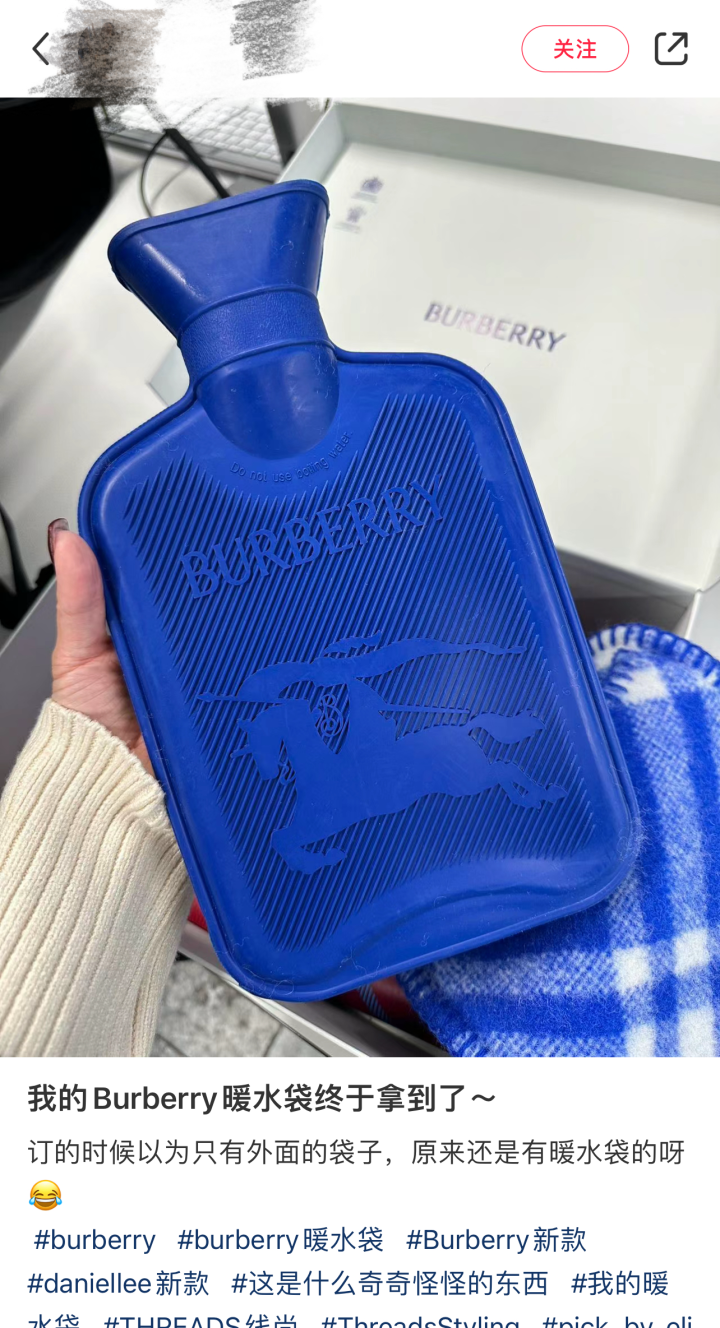 网友们各抒己见,那么高达3300元的热水袋,到底受众群体是什么人群呢?打开某红书,真的有网友晒出该款热水袋,并配文:“我的Burberry暖水袋终于拿到了,订的时候以为只有外面的袋子,原来还是有暖手袋的呀。”