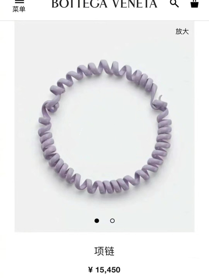 之前Bottega Veneta(葆蝶家)还出了一款项链,售价15450。如此昂贵的价格,怎么都要带点金吧,但是当我看到图片的时候,这不就是2元一根电话绳发圈吗?为何售价要上万?