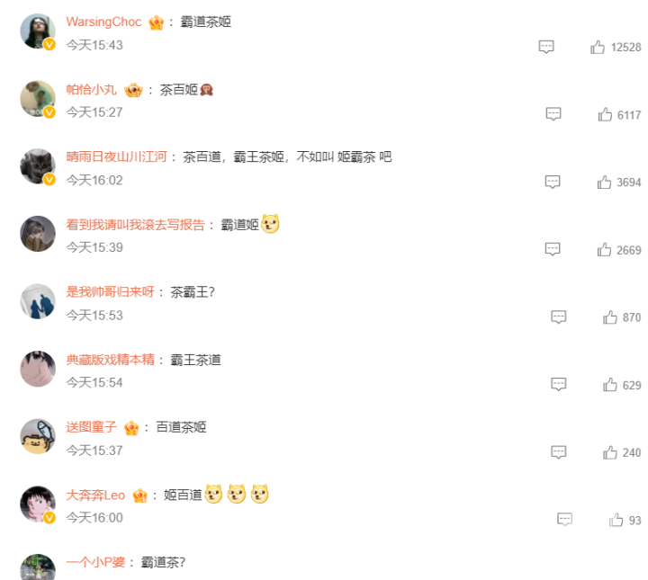 也有网友说,不管是霸道茶姬还是茶百姬,都有一种中二气息。还有网友建议叫霸道总茶,人气也颇高。