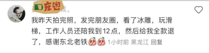 有人称:同样是游乐园,很多游客在迪士尼、环球影城排队也是一两个小时起步,也没有说抱怨或要求退钱,怎么到了冰雪大世界就如此苛刻?是不是欺负东北人老实善良?
