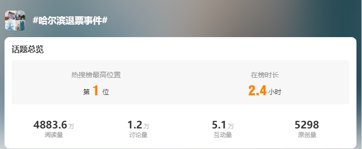 今天,话题词#哈尔滨退票事件#再度登上热搜,引发网友热议。