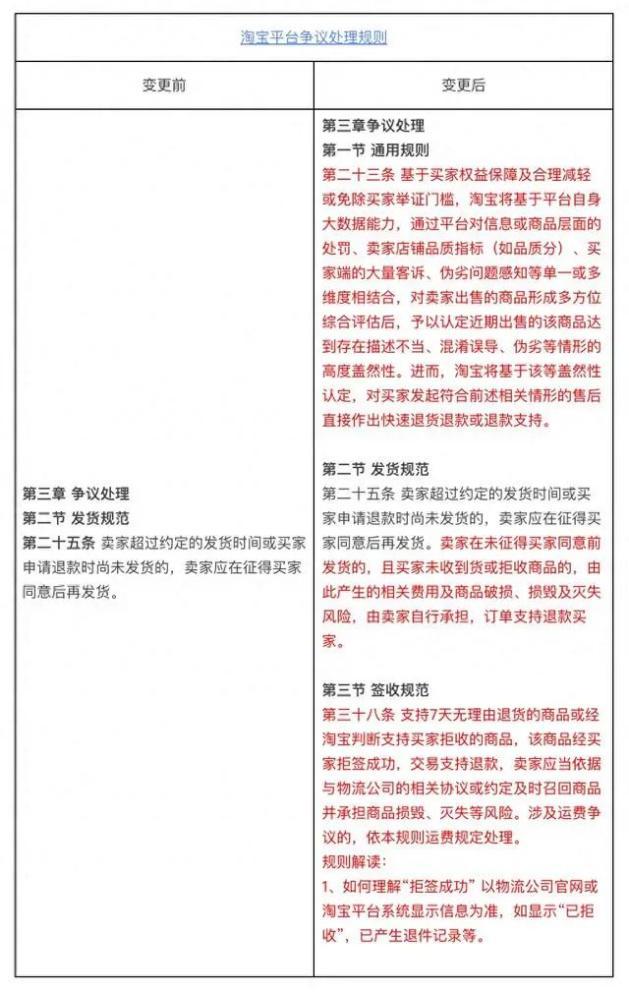 有媒体报道,淘宝近期公示了一份《淘宝平台争议处理规则》的变更通知。从这一份调整后的新规来看,这一次更新基本有3大要点。