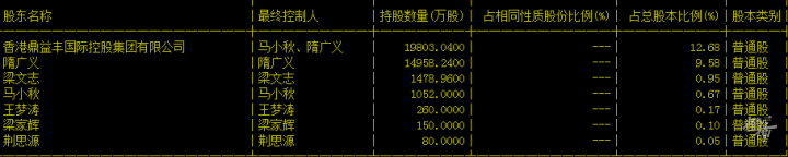 2017年鼎益丰通过购买港股的中投公司借壳上市(鼎益丰控股),之后还参股了一批上市公司,包括华音国际、ST天马(现改名为汇洲智能)、中国智能和彩虹股份等。