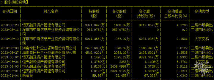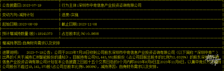 浙江上市公司“汇洲智能”(即原来的ST天马)去年7月发布公告,海南奇日升于2023年6月30日通过集中竞价方式减持所持公司股份878.69万股,占公司当时总股本的0.4411%。“汇洲智能”8月25日晚间发布公告称,深圳市中奇信息产业投资咨询有限公司减持计划实施完毕,于2023年8月11日减持公司股份约957万股,减持股份占公司总股份为0.4801%。深圳中奇信息和海南奇日升减持汇洲智能公司股份,减持原因就是自身财务需求。而隋广义是深圳中奇信息和海南奇日升的实际控制人。