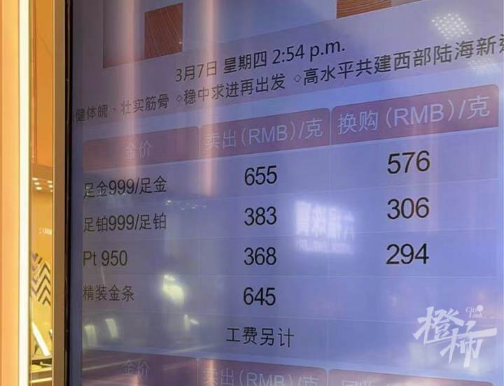 这轮金价上涨的幅度有多大?以周大福为例,记者记录了一周内的足金饰品价格:3月1日,周大福足金饰品价格630元/克,3月2日涨到了637元/克,周末不开盘因此3月3日、4日金价不变,3月5日继续上涨至645元/克,3月6日到达650元/克,3月7日来到了655元/克。