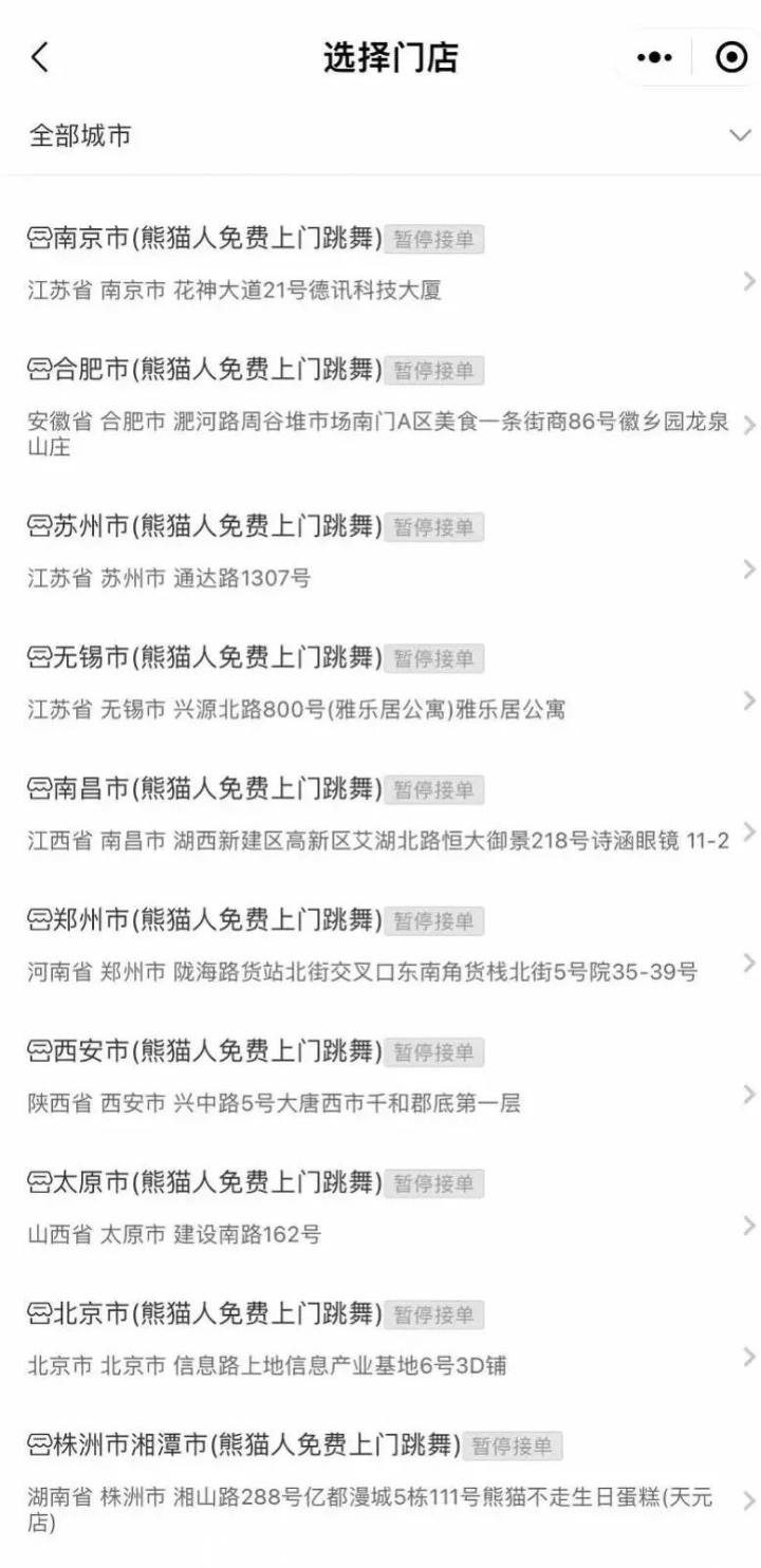 根据熊猫不走蛋糕微店,3月17日,熊猫不走蛋糕全国的网点均已经“暂停接单”,另外,根据大众点评网,其全国的网点均显示“暂停营业”。