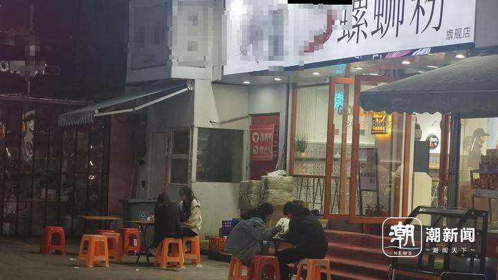 晚上七点到八点,原本是就餐高峰期。位于人流量较大的武林夜市内的一家螺狮粉店,一小时内,仅有三位顾客,但是周边其他麻辣烫、炒粉干商家,顾客数量远远超于它。