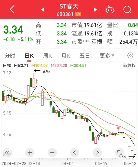 中新财经记者注意到,截至5月13日,ST春天股价已连续6个交易日跌停,总市值仅剩19.61亿元。