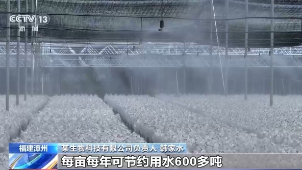 某生物科技有限公司负责人 韩家水:我们还采用遮阳网大棚和精准喷水系统来调节温湿度,每亩每年可节约用水600多吨。