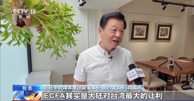 旺旺中时媒体集团副董事长 前台北县长 周锡玮:ECFA其实是大陆对台湾最大的让利,让台湾所有的产品可以零关税进入大陆市场,这是对台湾特别的待遇。如果民进党再这样搞下去,大陆对ECFA让利会越来越少。两岸之间一定要合在一起,我们本来就是中国人,从你的血统你的文化所有的一切来讲,你就是中国人。认同自己是中国人,然后让大陆和台湾好好地和平共荣,才是最正确的道路。