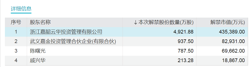嘉益股份解禁详细信息