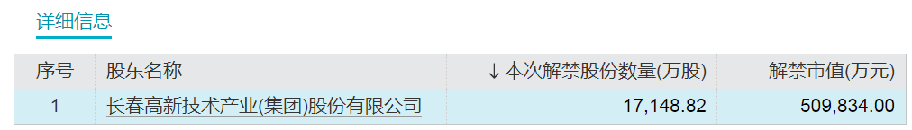 解禁市值第三大的百克生物解禁股东长春高新技术产业(集团)股份有限公司,为百克生物第一大股东。