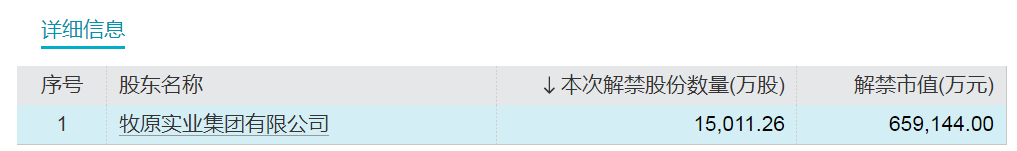 牧原股份解禁详细信息