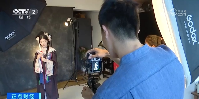 浙江杭州某照相馆负责人 夏宁馨:今年从6月份开始,我们就已经开始接相关的订单了,到现在已经接了近200单,其中有近八成是国风毕业照。比去年明显热情更高涨了,我觉得这也是独属于中国学子的一份浪漫。