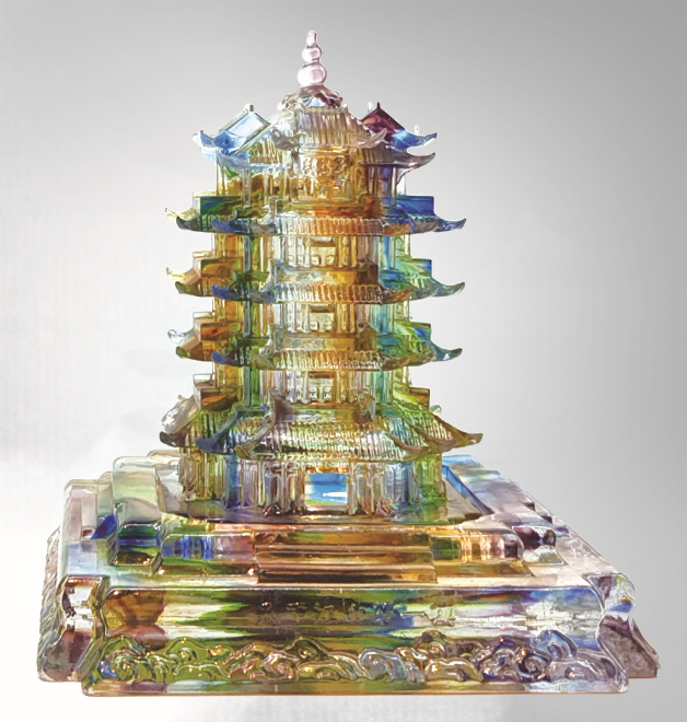 金帝子设计的黄鹤楼造型琉璃制品。受访者供图