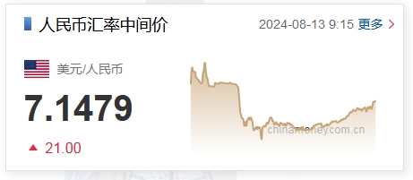 中新网8月13日电 据中国外汇交易中心网站消息,中国人民银行授权中国外汇交易中心公布,2024年8月13日银行间外汇市场人民币汇率中间价为:1美元对人民币7.1479元,下调21个基点。