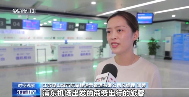 江苏昆山城市航站楼运营管理有限公司总经理 邹蓉:我们这条航线主要是针对浦东机场出发的商务出行的旅客以及有时间要求的乘客,它解决了传统地面交通耗时长、易受交通状况影响的这些痛点,为旅客提供了一个更加高效便捷的出行选择。我们的低空航线在价格上可能会略高一点,但是在时间上的优势其实还是显而易见的。