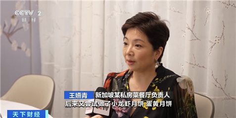 新加坡某私房菜餐厅负责人 王嬿青:我们从原味的上海鲜肉月饼开始,后来又尝试做了小龙虾月饼、蛋黄月饼,以及特制的蟹粉月饼。没有想到推出市场以后,新加坡客人从一开始非常惊艳、惊奇,到他们接受,现在他们会提前向我们预订。
