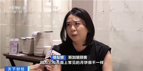 新加坡顾客 傅梨娜:我还是第一次尝试咸味月饼,我觉得这种月饼很新颖也很有趣,因为它和市面上常见的月饼很不一样,它吃起来真的很咸鲜,我认为会有更多新加坡人喜欢它。