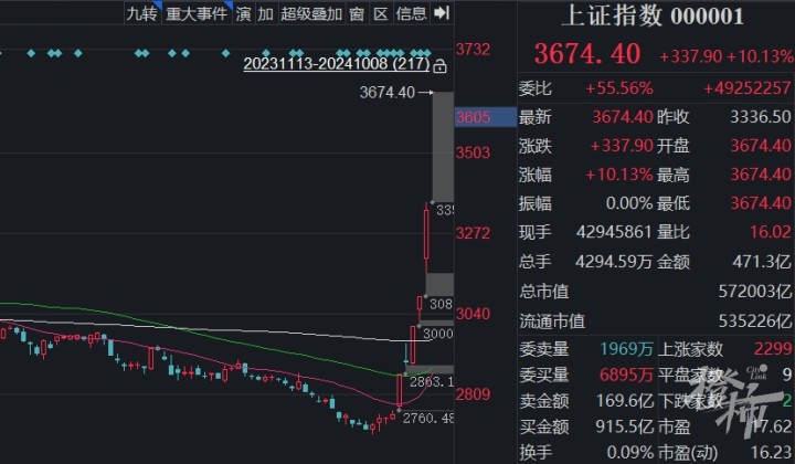 A股的大涨行情还在继续,上午9:25分集合竞价出来后,A股三大指数节后首日大幅高开,上证指数高开10.13%,深证成指高开12.67%,创业板指高开18.44%。北证50指数高开26.67%。证券、半导体、房地产板块批量涨停。