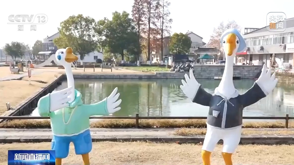 溧阳市竹箦镇的姜下村,村民有养鹅的习惯,漫步在村里,各种憨态可掬的鹅卡通造型随处可见,还有鹅餐厅、鹅咖啡店、鹅农场,来村里打卡的外地人络绎不绝。2021年毕业于南京航空航天大学英语专业的葛晨,最近几天,正在和小伙伴一起,为村里策划以鹅元素为主题的新年活动。