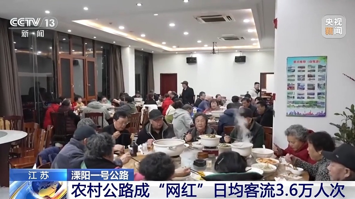 蔡小春曾长期在外务工,2015年回到村里,开了一家民宿,客流量一年平均有上万人次。2018年溧阳一号公路通车后,他陆续开起了第2家、第3家,2024年,总客流量接近5万人次,2025年蔡小春的第4家民宿就要开张。即将到来的春节假期,他家民宿的所有房间都已预订了出去。记者来到其中一家,正好赶上吃晚饭的时间,一楼餐厅的多个大圆桌,都坐满了人。