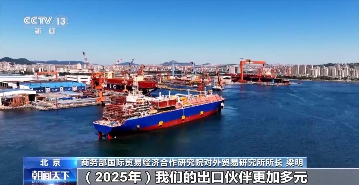 商务部国际贸易经济合作研究院对外贸易研究所所长 梁明:初步预测,我们对新兴市场国家出口的占比已经高达63.4%了,(2025年)我们的出口伙伴更加多元,我们对传统市场的依赖度会进一步地下降,对新兴市场的占比会进一步地提升。