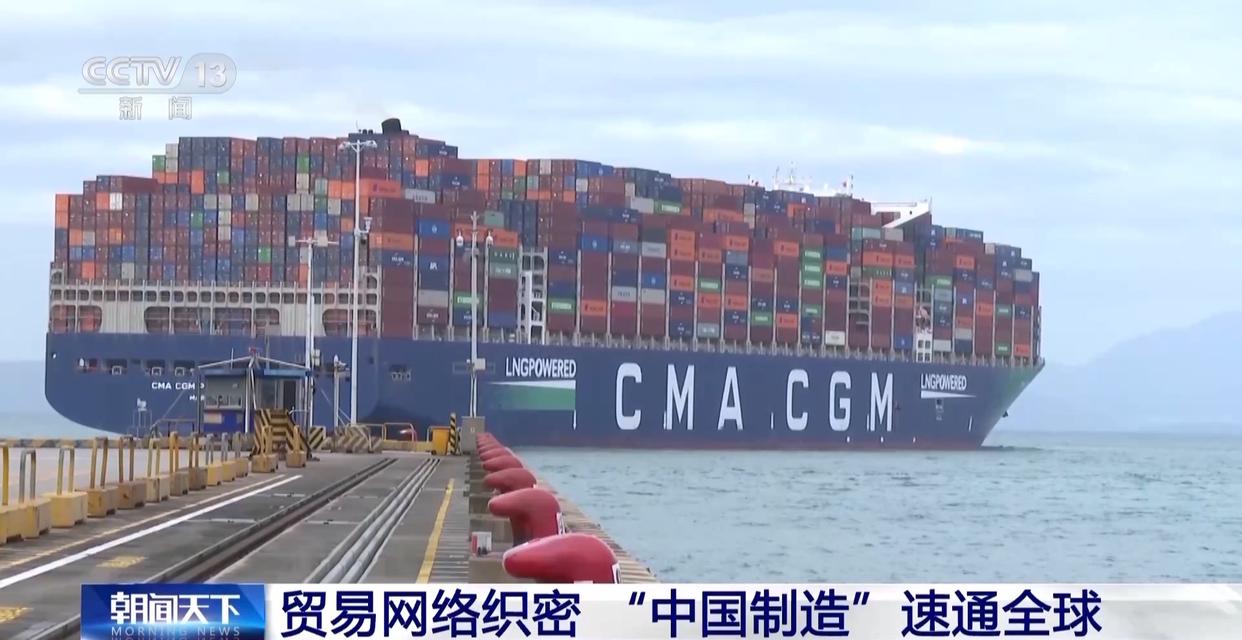 中国通往世界的海上贸易网络也忙碌起来。在深圳盐田港,一艘全球最大体量的超大型集装箱船,正准备启航。这艘货轮满载了来自中国的电子消费品和日用品,将驶向英国。