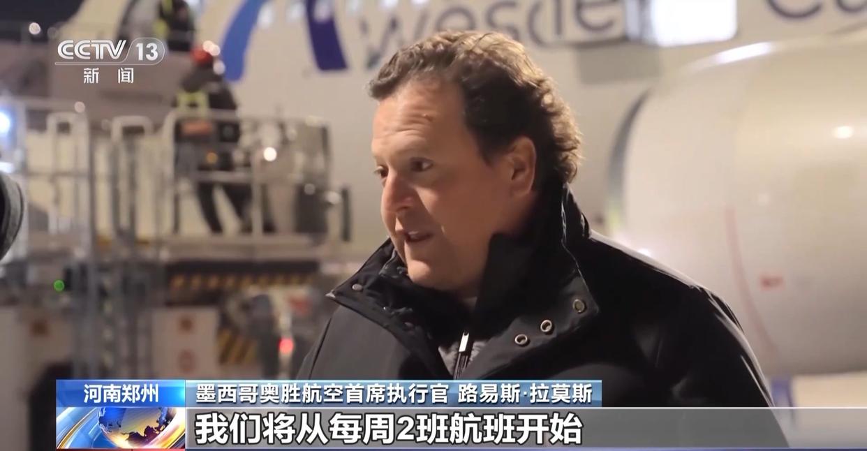 墨西哥奥胜航空首席执行官 路易斯·拉莫斯:我们将从每周2班航班开始,逐步增加到每周7个,从墨西哥到中国的郑州新郑国际机场,可以将墨西哥的生产的产品更加便捷、高效、低成本地运送至中国。