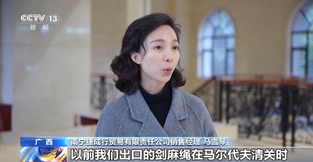 南宁捷成行贸易有限责任公司销售经理 马雪琴:以前我们出口的剑麻绳在马尔代夫清关时,客户需要缴纳15%的关税,现在使用协定原产地证书,就可以享受零关税待遇。