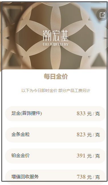 最近特别火的高端品牌老铺黄金,杭州大厦店的葫芦小号一件一口价含加工费是12430元,大约7克左右。不过目前已断货。