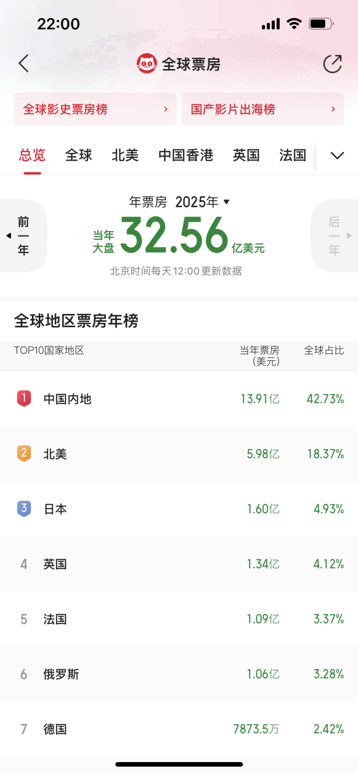 在春节档的助力下,今年以来中国内地电影总票房也超过百亿,超北美票房成绩,位列全球第一。