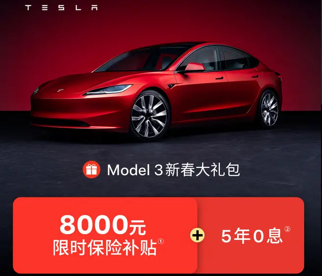 2月5日,2025年开工第一天,车企价格战就打响。特斯拉就打出了Model 3史上最大力度的优惠组合拳:限时保险补贴8000元+5年0息政策+特享充电权益(买家充桩立省3900元)。这是特斯拉保险补贴首次覆盖Model 3全系车型(包括Model 3高性能版),也是保险补贴和5年0息政策罕见地“首次同框”。
