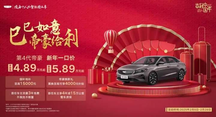 近日,吉利第4代帝豪自动挡车型限时新年一口价仅需5.89万元起。此前,吉利宣布第4代帝豪手动挡限时售价4.89万元起。这一举措直接将A级家轿的入门价首次拉至4万元级,再次降低了A级家轿自动挡车型的购车门槛。