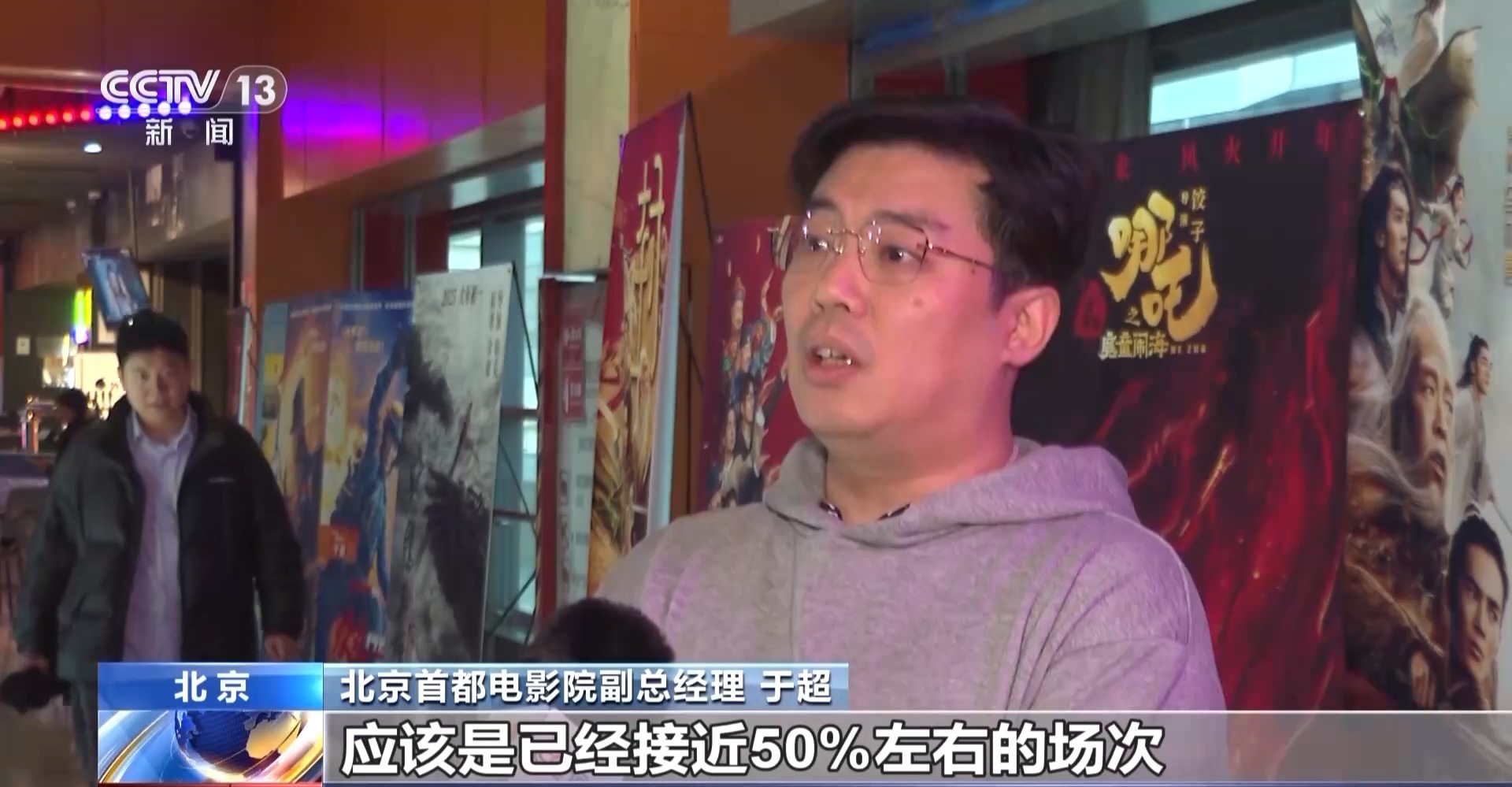 北京首都电影院副总经理 于超:从目前的情况看,我们在《哪吒2》这部影片的排场已经接近50%左右的场次,相较初一刚上映的那一天翻了一番。