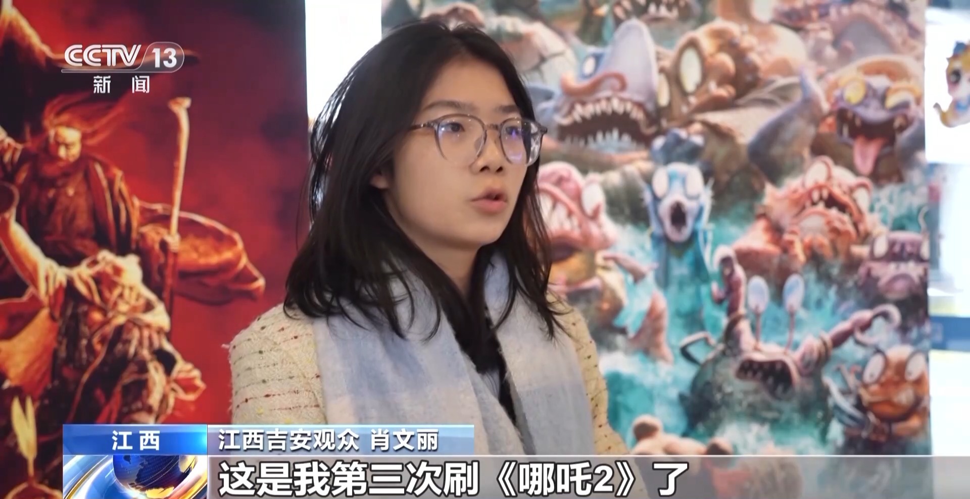 江西吉安观众 肖文丽:这是我第三次刷《哪吒2》了,我每一次看都会有不同感受,尤其是哪吒在困境的时候,会以乐观豁达的心态去面对,是我们年轻人在追求理想的道路上所需要的一种心态。