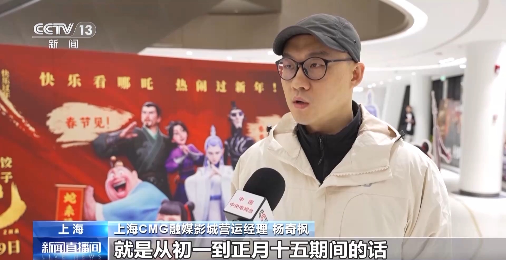 上海CMG融媒影城营运经理 杨奇枫:整个春节期间上座率是特别高的,而且我们一直在增加它的场次,因为客流量实在是太大了。