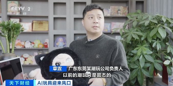 广东东莞某潮玩公司负责人 章霆:以前的潮玩是固态的,现在我们把它附加了灵魂,我们增加了AI的这款毛绒产品,目前预计已经订出去了200万只。