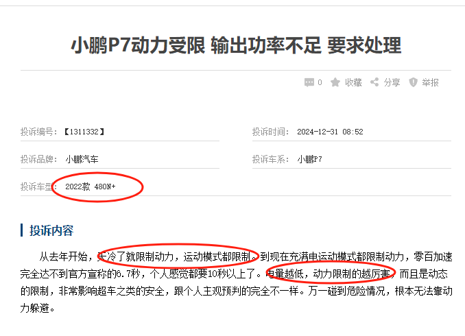 小鹏并非因OTA升级导致加速性能降低的唯一汽车品牌,如特斯拉Model 3、Model Y 的海外及国内用户均反馈过,系统升级后车辆加速性能下降,续航里程异常减少,部分车辆还触发“功率受限”警告。蔚来ES6、ES8部分车主曾反馈系统升级后出现“电机功率降低”“加速无力”,系统提示“高压系统故障”。还有奇瑞QQ冰淇淋车主称,提车当月就遇到动力系统故障,系统升级后半年又多次出现输出功率受限,无法提速的情况,而厂家称车辆在低温或特殊情况下为保证电池寿命及安全性,会限制输出功率。