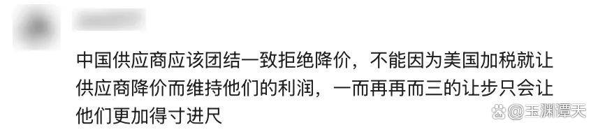 中国制造业从业者在相关新闻的评论区提到,中国企业“没有为美国关税降价的空间”。