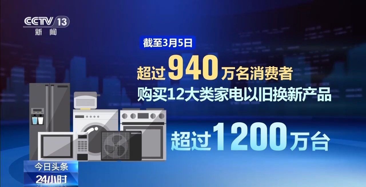 商务部数据显示,截至3月5日,超过940万名消费者购买12大类家电以旧换新产品超过1200万台,已有超过3400万名消费者申请了超过4200万件手机等数码产品购新补贴。
