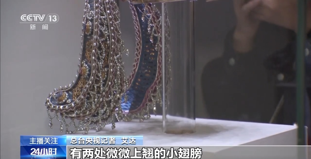 国家博物馆陈列工作部副主任 李雪:它应该是皇后在出席正式场合佩戴的。总重量达到2320克,共镶嵌宝石有115颗,珍珠达到4414颗。花丝金龙是拿黄金拉拔成细丝,最细的部分可能能达到0.2毫米。点翠的花型比较复杂,包括翠云、凤凰。其实都能看出我们古代中国审美的一个特点。