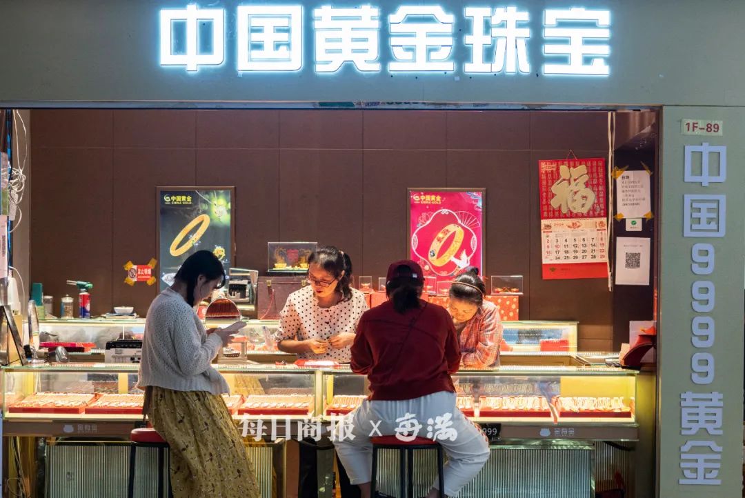 看着不断攀高的金价,上个月刚刚完成婚礼的吴女士暗暗窃喜。去年9月份,她在周大福买了结婚“三金”(手镯、项链、耳环)共计60克,当时的价格是750元/克,与昨日的金价相比,仅半年左右,足足涨了203元/克,价格相差12180元。