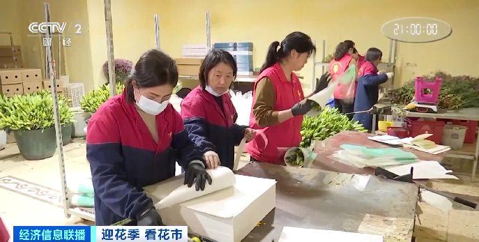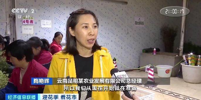 云南昆明某农业发展有限公司总经理 隋艳辉:5月份母亲节,所以我们从现在准备。今年我们的鲜花出口大概增长20%,目前出口至韩国、东南亚国家,还有中亚,现在每天有10吨左右出口。