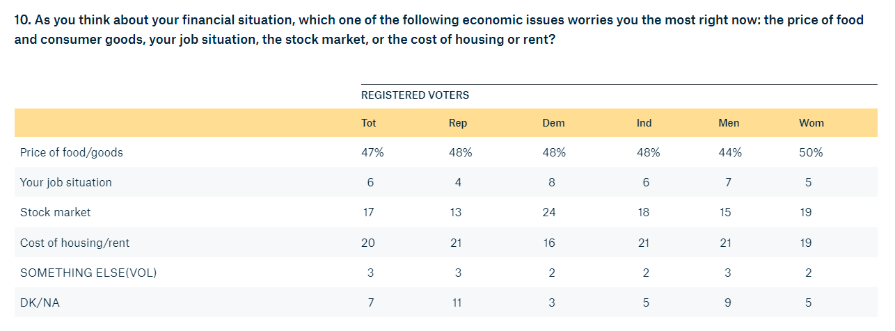 △民调结果显示,47%受访者担心食品和消费品的价格